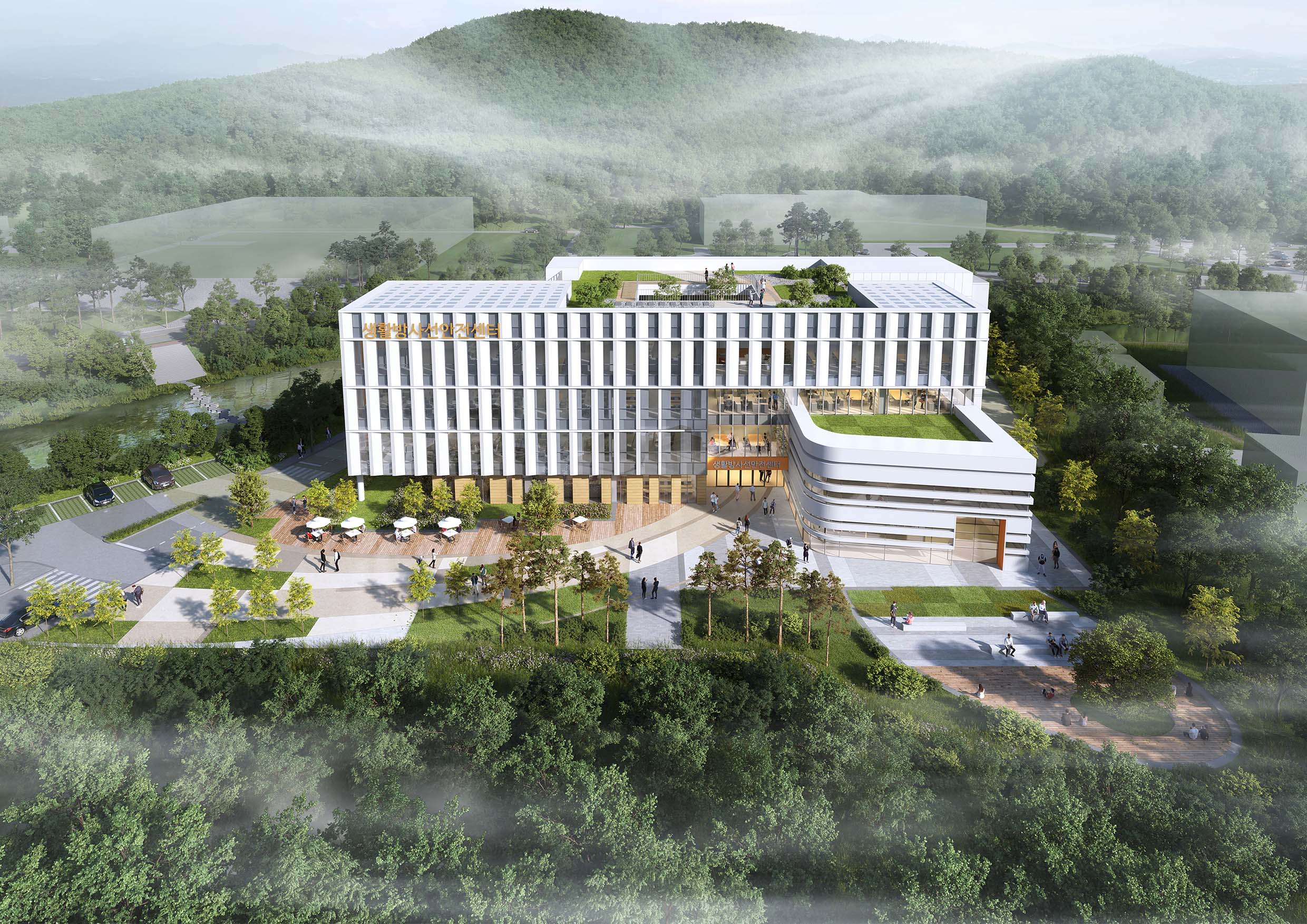 한국 원자력 안전 기술원의 아이덴티티를 바탕으로 기존 연구동과 주변 자연환경과의 조화를 이루고자 하였다. 최근 라돈 침대 및 각종 생활용품에 포함된 라돈 측정요구에 대응하는 전용 실험실 구축과 환경방사능 탐지강화 등의 특수 조건에 적합한 최적화된 실험공간을 제안하고자 한다. 실험대를 가장 효율적으로 놓을 수 있는 모듈과 개방형 평면을 구성하여 시간의 흐름에 따른 공간이용의 변화 요구에 능동적으로 대응할수 있도록 하였다. 또한, 안전센터에 오랫동안 머무는 근무인원을 고려하여, 중정형 아트리움. 복도의 포켓쉼터, 코워킹 룸과 옥상정원까지 쾌적한 공용공간과 휴게공간을 설치하였으며, 주변 자연 속 연구소가 되고자 하였다.